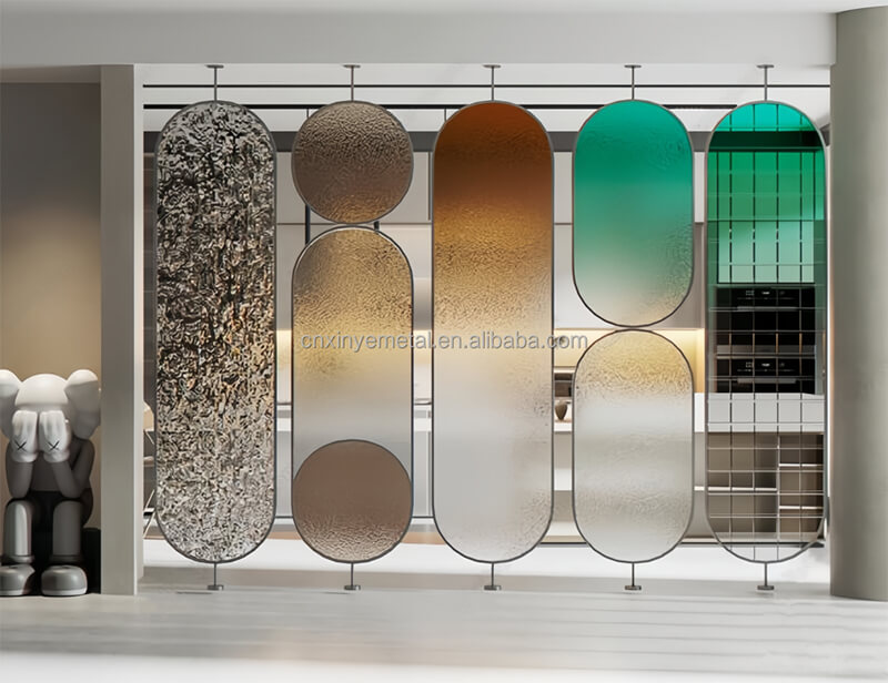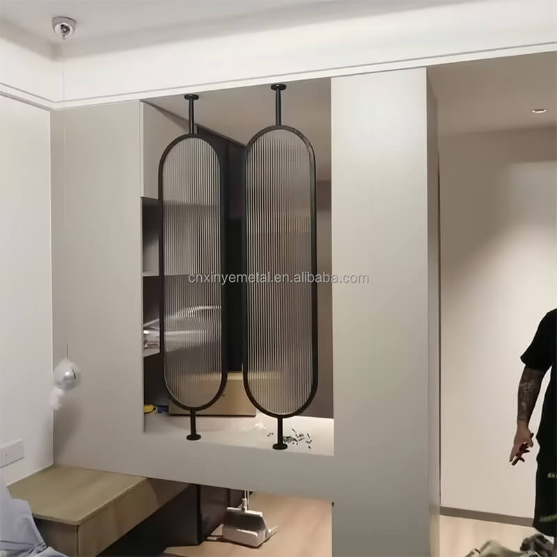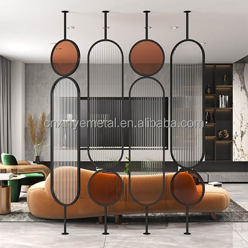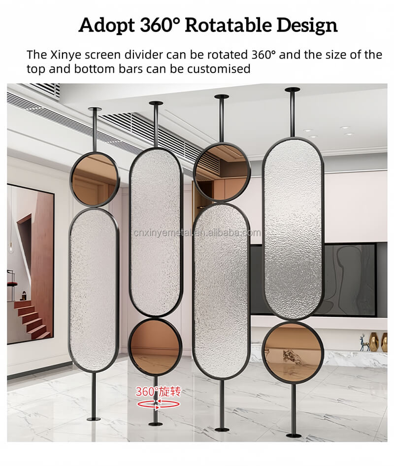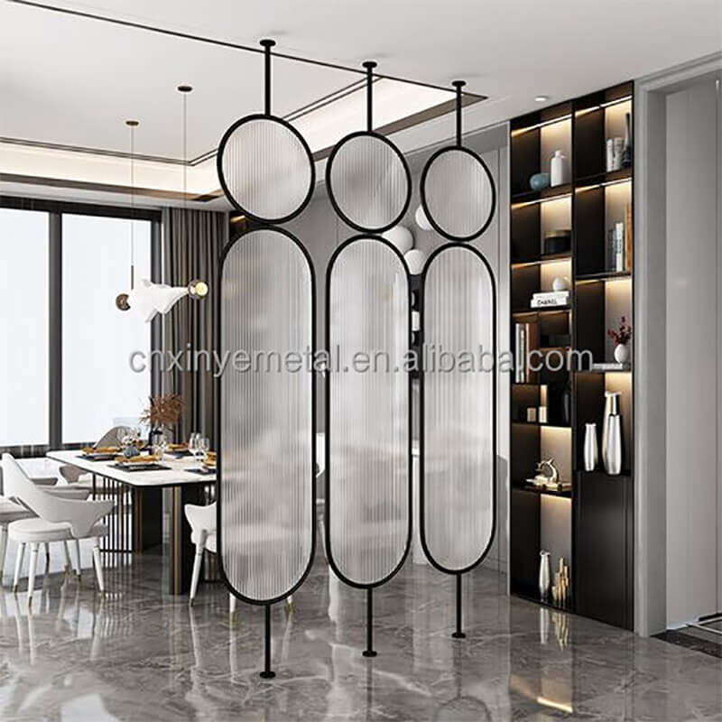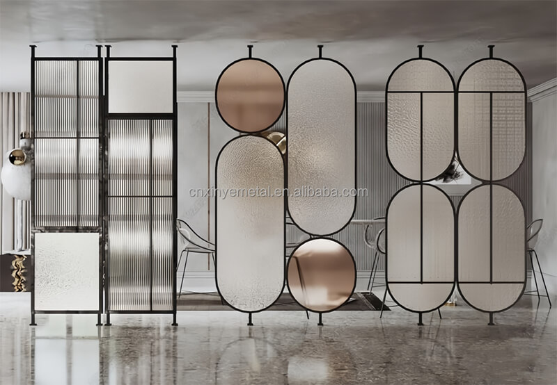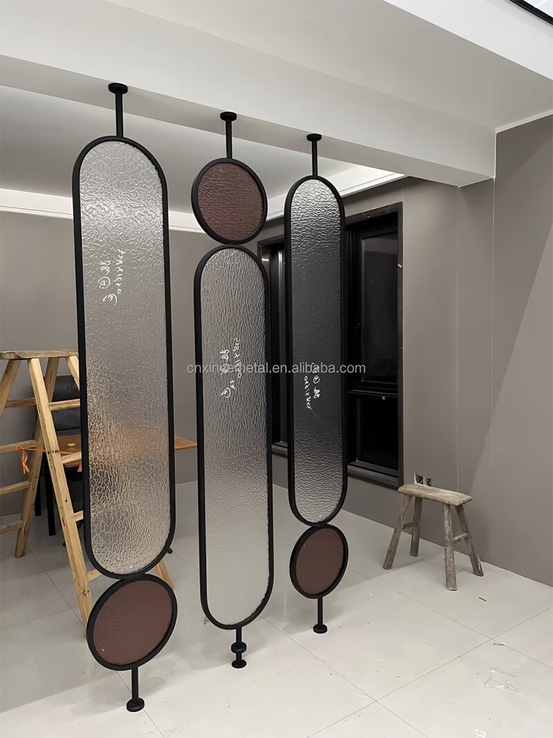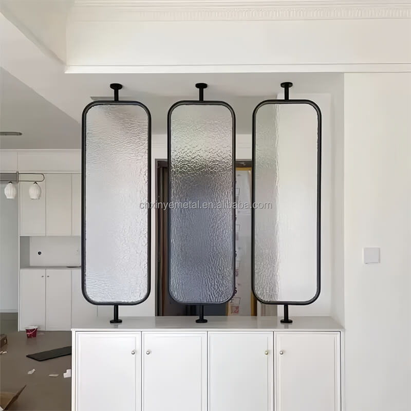 Custom Design Minimalist Rotatable Metal Iron Glass Screen Partition Separation Wall Divider for Dining Room Office Buildding