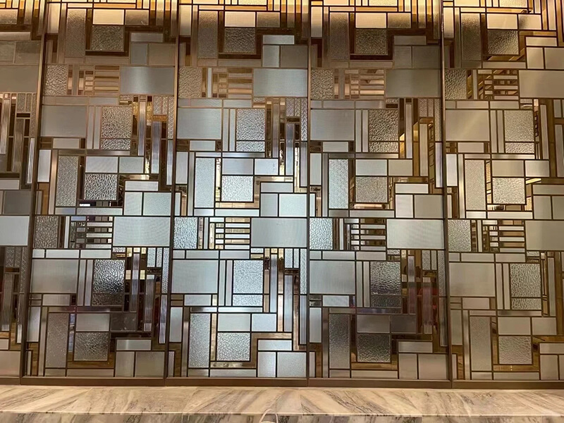 Custom Decorative Polishing Metal Stainless Steel Frame Glass Brick Block Screen Divider Partition Wall for Engineering