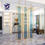 Nordic Light Luxury Rotatable Toughened Glass Screen Divider 24K Nano Spray Paint Stainless Steel Frame Telescopic Partition