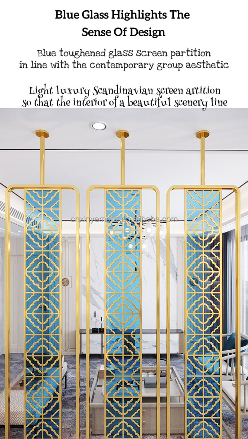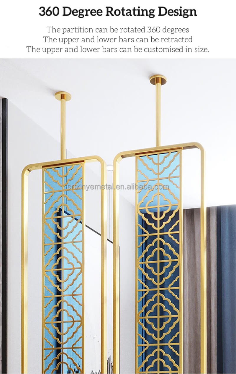 Nordic Light Luxury Rotatable Toughened Glass Screen Divider 24K Nano Spray Paint Stainless Steel Frame Telescopic Partition