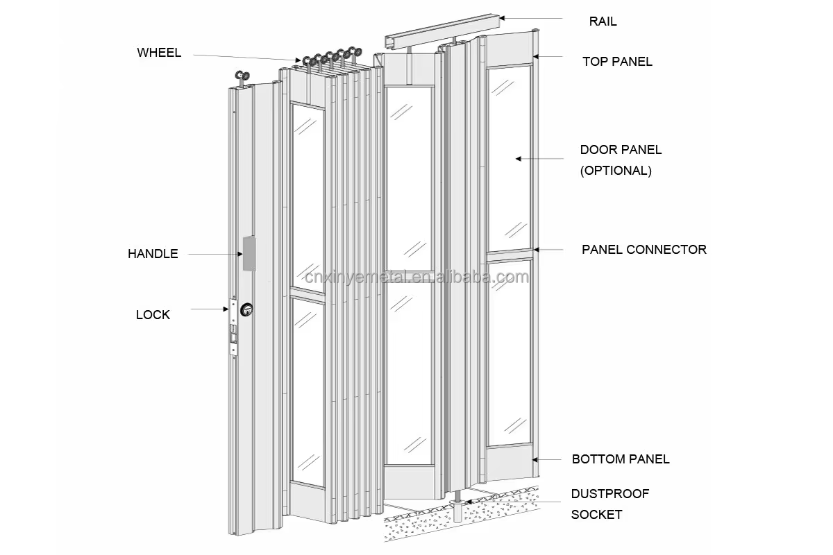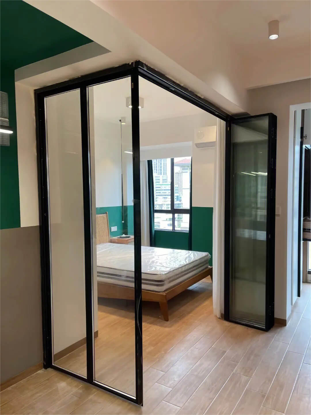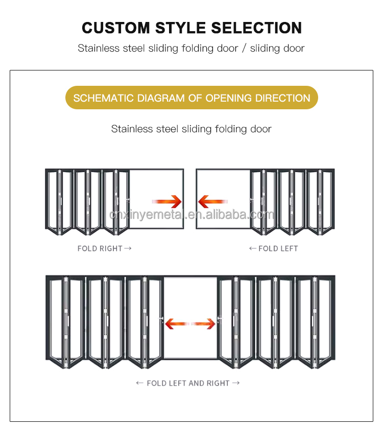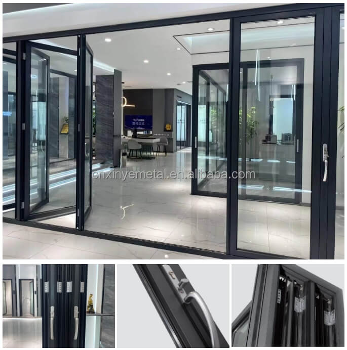 Stainless Steel Frame Glass Patio Gate Movable Partition Wall Folding Sliding Accordion Doors for Office Villa Airports Museums