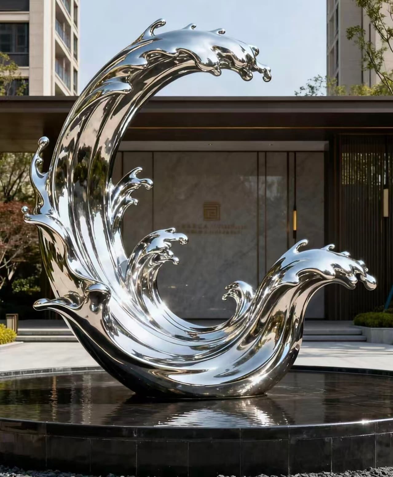 • Public & Urban Areas: Use abstract stainless steel water sculptures or weatherproof stainless steel waterscapes for plazas, parks, and plazas. Their durability and bold design make them ideal for high-traffic outdoor locations, adding a touch of luxury and interaction to public spaces.