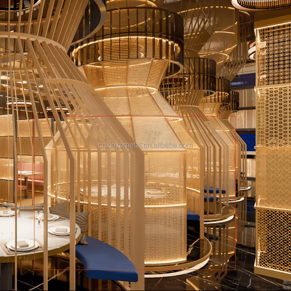 Custom Large Bird-Cage Stainless Steel Partition Wall Art Deco Restaurant Metal Room Dividers Screen Engineering for Decoration